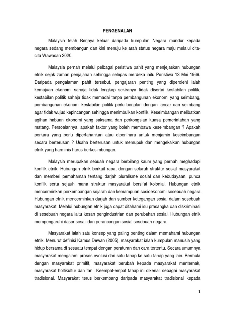 Hubungan Etnik Assignment 1 0 Pendahuluan 1 1 Pengenalan Hubungan Etnik Adalah Salah Satu Daripada Aspek Penting Dalam Kehidupan Manusia Kerana Course Hero